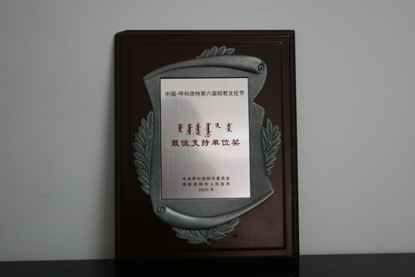 中國·呼和浩特第六屆昭君文化節(jié)最佳支持單位獎(jiǎng)