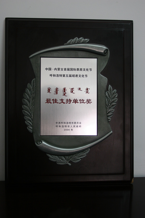 中國·內蒙古首屆國際草原文化節 呼和浩特第六屆昭君文化節最佳支持單位獎