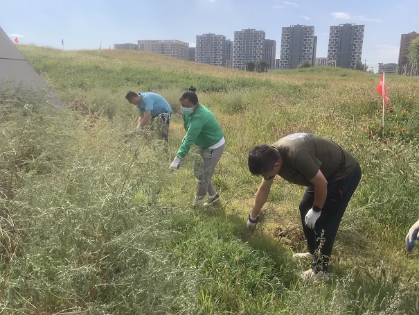活動中,大家齊心協力、團結協作,采取手拔蒿草的方式,對站場進站口南側綠化帶區域的蒿草進行了集中清理,同時做到即清即運,防止草籽散落導致再次生長。