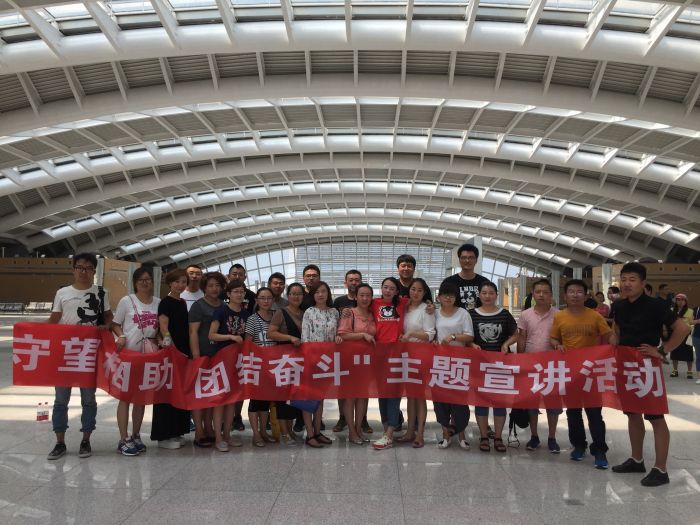 宣講活動由總公司團(tuán)委書記趙杰主持。各分公司團(tuán)支部的一名代表進(jìn)行宣講,再由趙杰書記進(jìn)行總結(jié)。趙杰帶領(lǐng)大家回顧了城發(fā)公司的發(fā)展歷史,進(jìn)一步學(xué)習(xí)領(lǐng)會了“守望相助 團(tuán)結(jié)奮斗”的精神。隨后由各支部組隊,每一個支部為一個團(tuán)隊,圍繞“團(tuán)結(jié)”進(jìn)行“烽火傳書”信息傳遞拓展活動。歷經(jīng)2個多小時的團(tuán)隊合作,金橋分公司團(tuán)支部獲得了第一名。